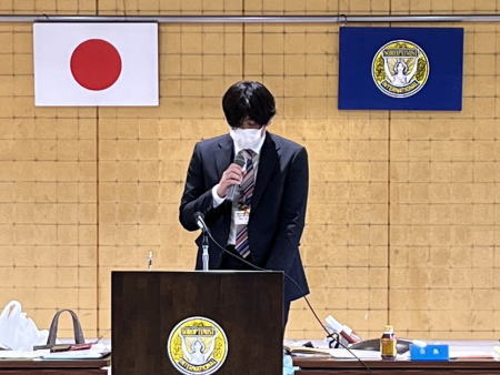 第1部は、リジョンからのテーマ「日本の伝統文化 学び・つなぐ」にもとづいた生徒各自の意見の発表、第2部は、審査員からのテーマ「あなたはAI(人工知能)とどうかかわっていきますか?」についての討論会でした。