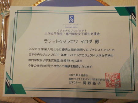 この度「大学女子学生・専門学校女子学生支援金」に、当クラブからリジョナルプロジェクトに応募した、ラフマットゥッラエワ イロダさんが受賞しました。