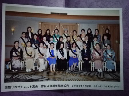 ※ 「SI高山会員29名皆出席も喜ばしいことです。会員ひとりひとりが与えられた役割に責任を持ち、精一杯の笑顔で高山のおもてなしをしたことが認証40周年式典・祝宴を成功に導いた事と思います。」