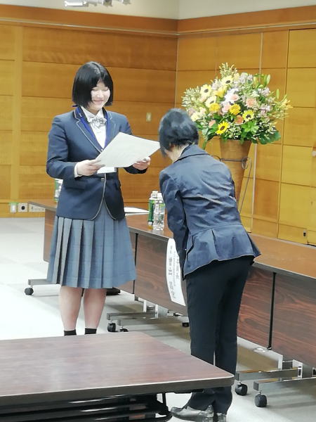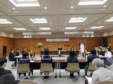 [総評では] 長瀬委員から全体の感想 「皆様にとって素晴らしい機会だったと思います。自分の考えをしっかり持ち積極的に討論に加わる姿対応の仕方など誇らしく思いました。輝く女性の生き方とは、まさしくここで発表された輝きのある生徒さんだと思います。皆さんと出会えた事がとても嬉しく思います。