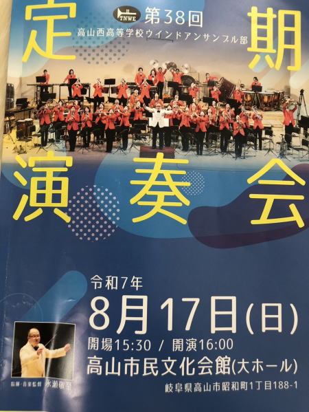 第38回高山西高等学校ウインドアンサンブル部定期演奏会が開催され、国際ソロプチミスト高山からは、9名が演奏会に出席。