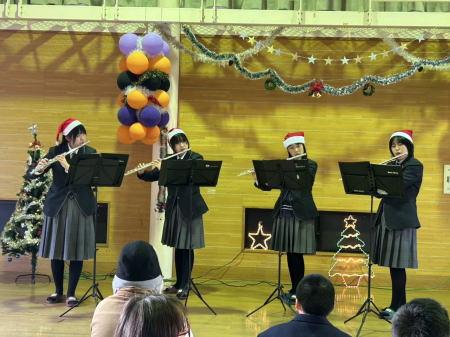 ウィンドアンサンブル部の生徒さん10人による、フル-トやサックスの演奏を、山ゆり学園の 子どもたちと一緒に楽しみました。