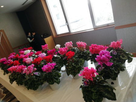 吉城山ゆり学園栽培のシクラメンを1鉢1,5000円40鉢を仕入れ、会員メンバーに販売 完売となり、会員の皆様には38鉢2,500円にて販売し、総売上
