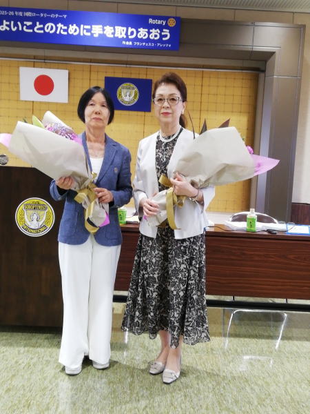 川﨑和子さん、都竹文子さん、お二人の新会員を迎えさせていただきSI高山入会式を行いました。